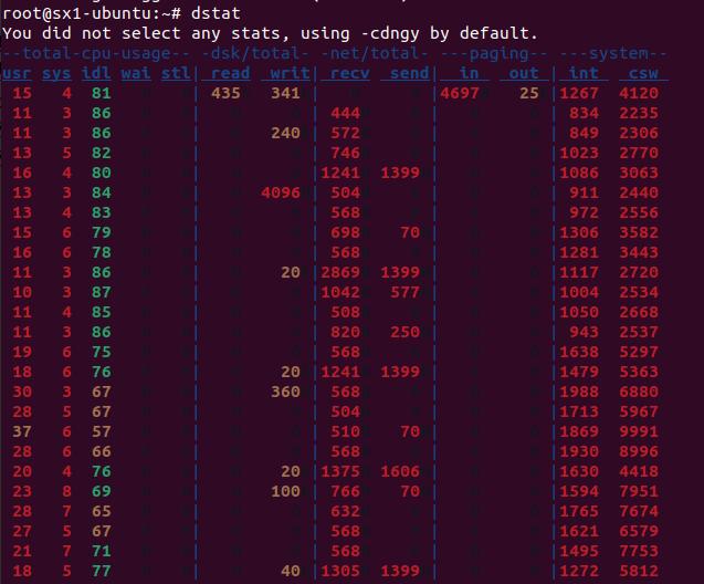 Perintah dstat adalah suatu tools yang digunakan untuk mengambil informasi atau statistik dari komponen sistem seperti koneksi jaringan, perangkat IO, atau CPU, dll. Biasanya digunakan oleh administrator sistem untuk mengambil beberapa informasi tentang komponen dari sistem. dstat seperti halnya dengan vmstat, netstat, iostat, dll. Dengan menggunakan alat ini, seseorang bahkan dapat melihat throughput untuk perangkat blok yang membentuk sistem file tunggal atau sistem penyimpanan.
