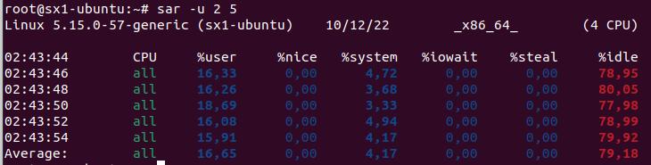 Perintah sar (System Activity Report) merupakan bagian dari paket sysstat di Linux, jika belum meng-installyang menyediakan berbagai utilitas sistem. Selain itu, paket sysstat berisi pengumpul data sistem yang berjalan sebagai tugas cron dan mengumpulkan semua statistik sistem dan menyimpannya dalam file data. Kami kemudian dapat melihat statistik ini dengan bantuan perintah sar.